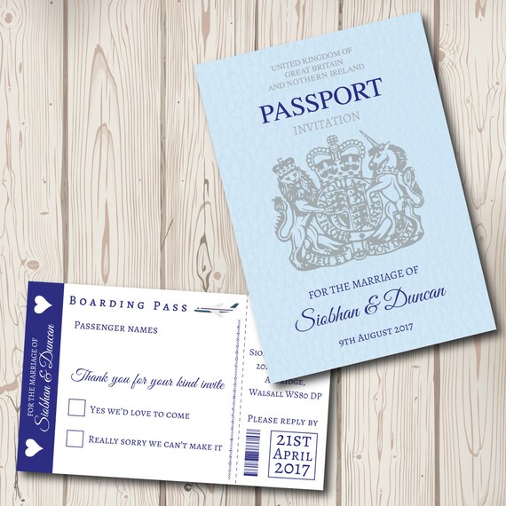 Faire Part De Mariage Passeport Avec Boarding Pass Rsvp Etsy